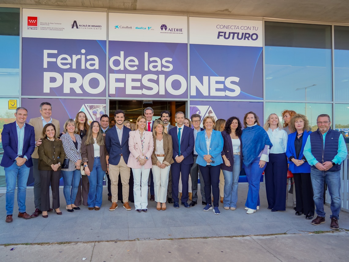Una gran oportunidad para que los jóvenes torrejoneros encuentren su futura profesión. En eso consiste la VI Feria de las Profesiones del Henares, en la que han particiapdo los institutos torrejoneros León Felipe, Isaac Peral, Valle Inclán y Tafad Madrid, cuyos stands fueron visitados ayer por el alcalde, Alejandro Navarro Prieto, acompañado por la alcaldesa de Alcalá de Henares, Judith Piquet; la presidenta de la Asociación de Empresarios del Henares (AEDHE), Laly Escudero Ossorio; el director General de Educación Secundaria, Formación Profesional y Régimen Especial, Comunidad de Madrid, Jesús Manso Ayuso; el director de Área Territorial Madrid-Este, Marcos Rafael Moreno; y la directora de Area Negocio en CaixaBank, Laly Pulido. El objetivo de esta iniciativa es que los jóvenes que asisten puedan explorar todas las familias profesionales ofertadas en la región, conectar con las empresas y conocer las salidas laborales más demandadas. La cita, que en esta ocasión se celebró en Alcalá de Henares, reunió a Institutos de Secundaria, estudiantes y empresas de todo el Corredor del Henares.