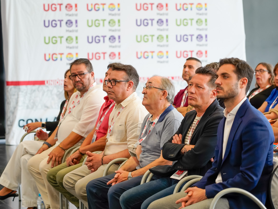 Torrejón de Ardoz, 5 de junio de 2025. Al evento sindical también asistieron Juan Antonio Lorido Narciso, secretario general de UGT FICA Madrid, Jesús de La Roda, secretario general de UGT Unión Comarcal Este, así como representantes de las Federaciones de UGT (Servicios Públicos, FeSMC – Servicios, Movilidad y Consumo, UJP – Unión de Jubilados y Pensionistas).
